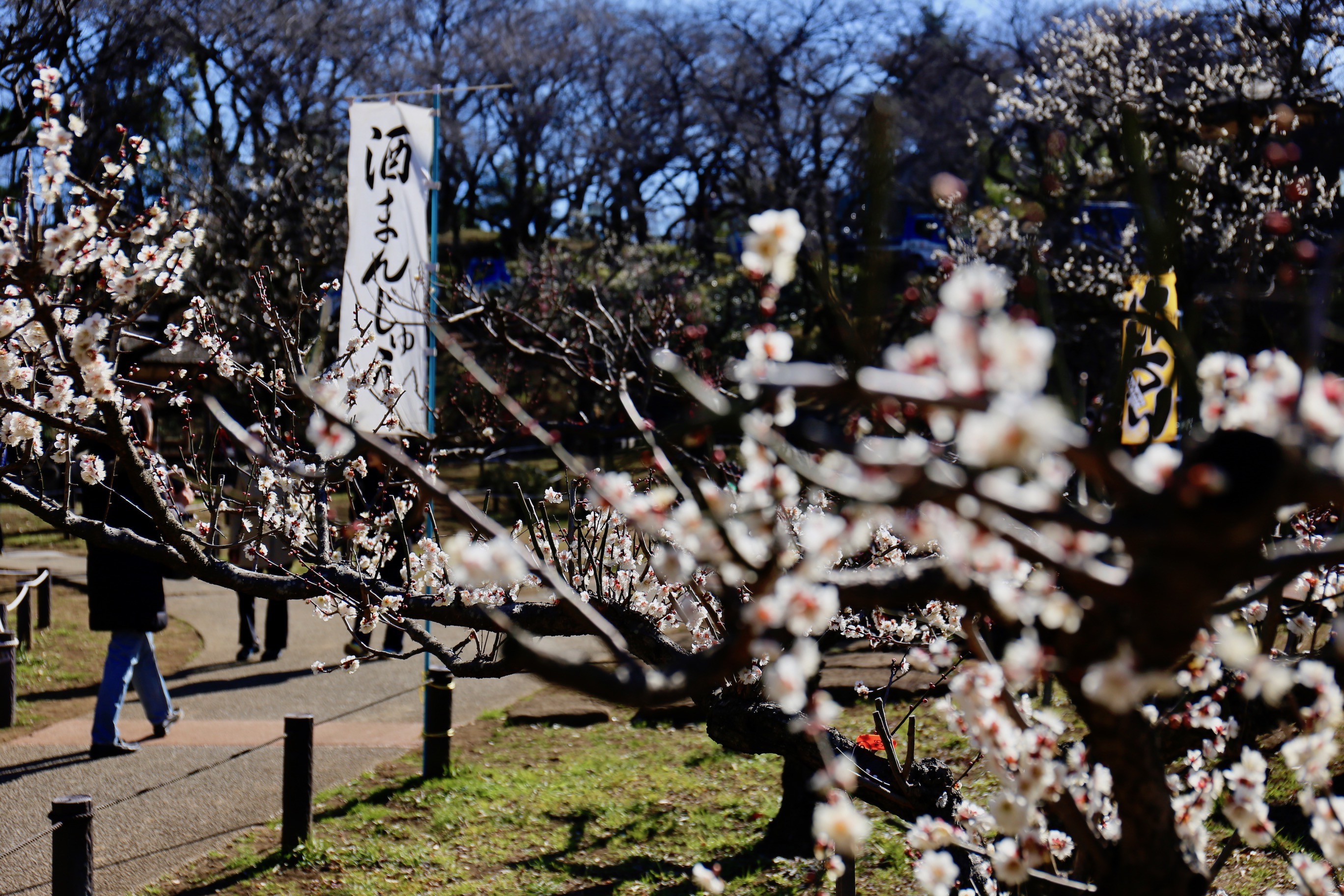 A picture below was taken last year at a park close to my house. You may need my explanation if you don’t understand Japanese letters. A white flag over there is proposing Japanese sweets, spring blossoms have a strong connection with in terms of traditional culture of civilization.