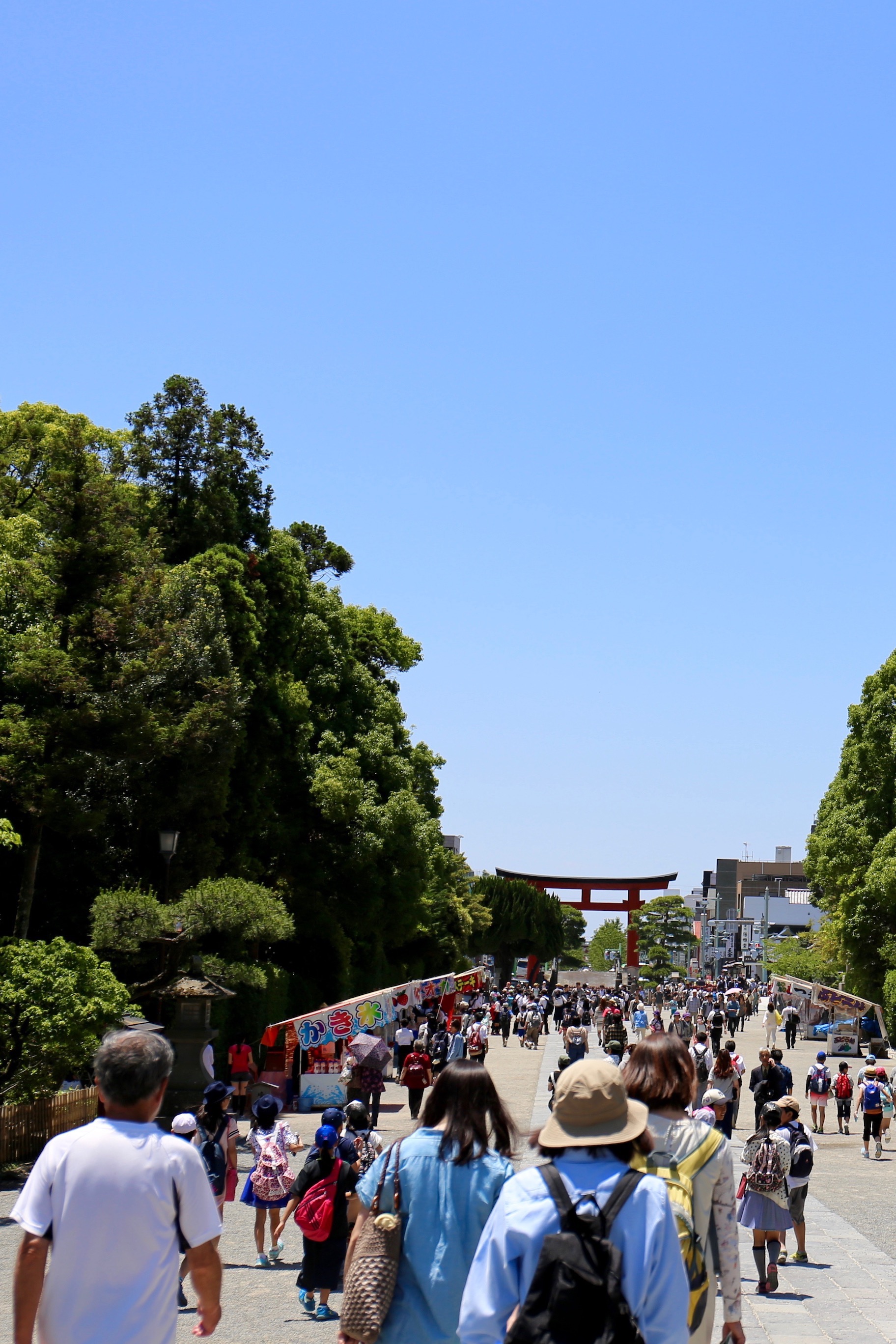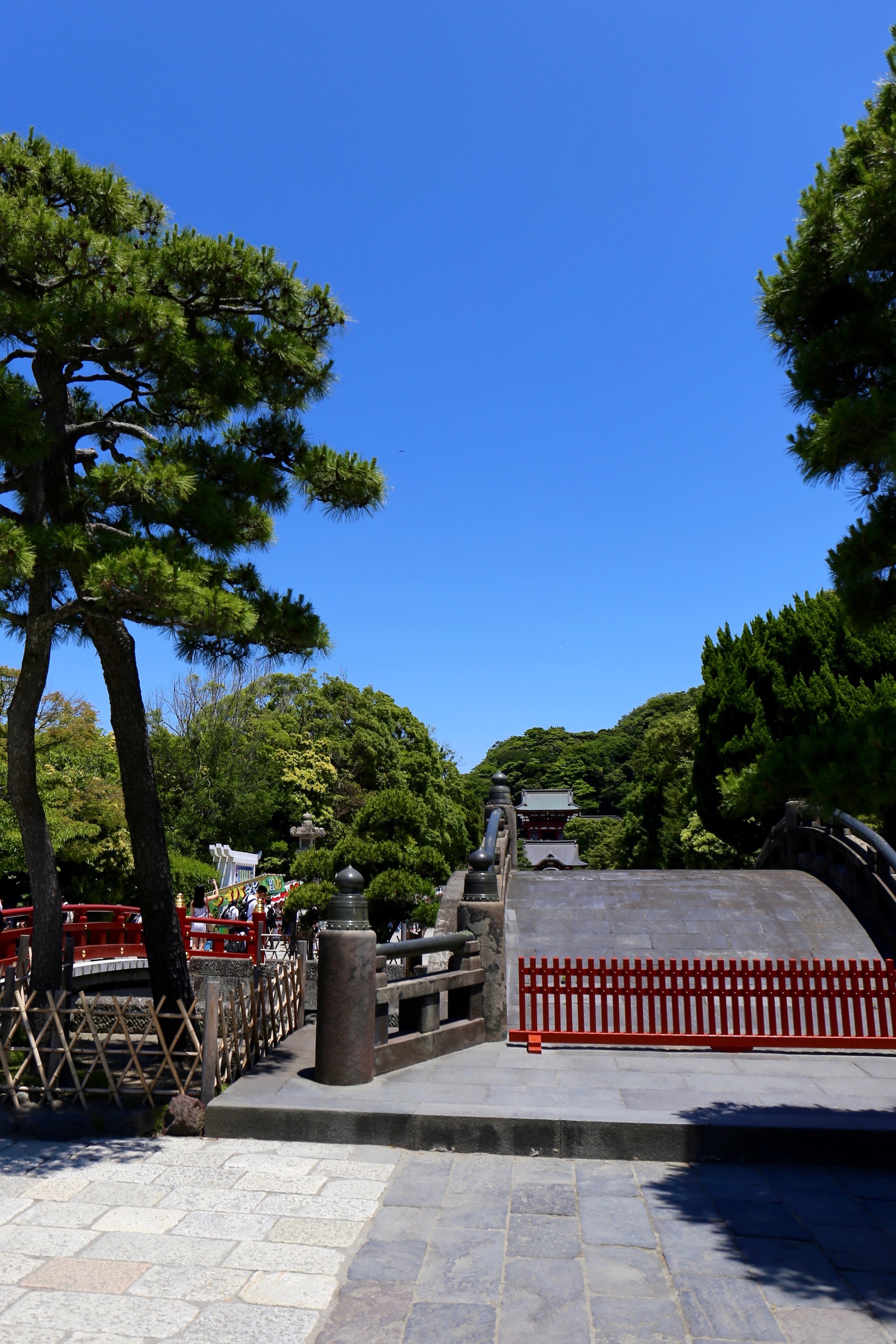 Thank you. Clear blue sky, deep green and red wooden pieces of a shrine, I like this combination.