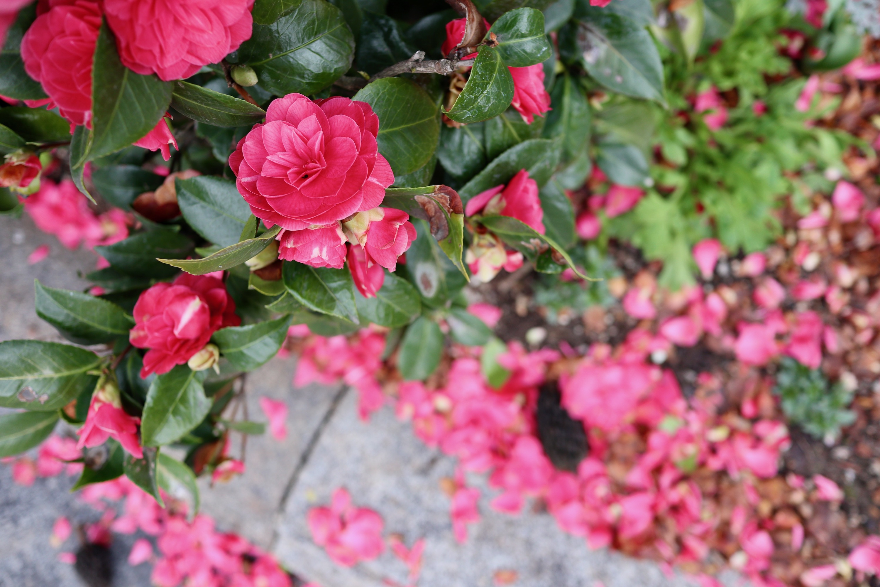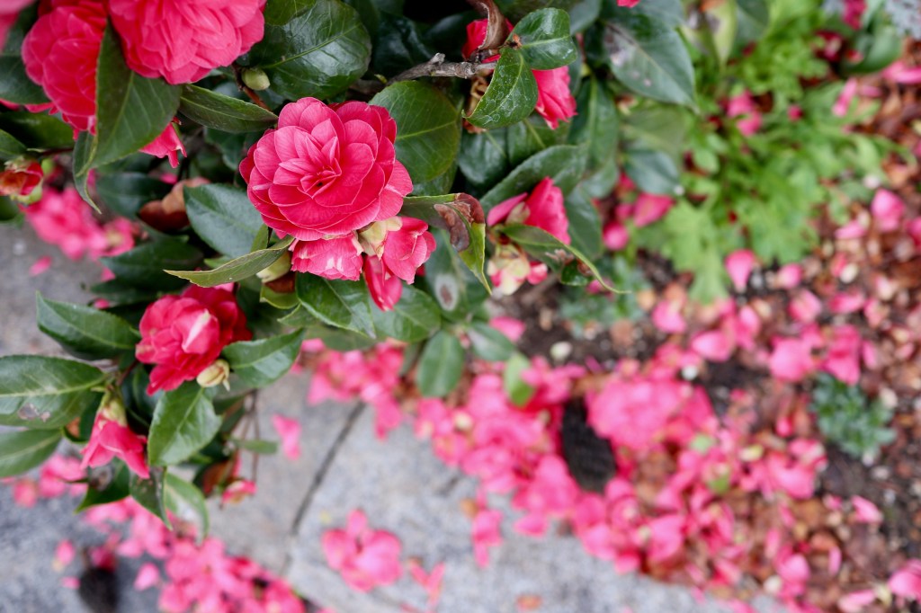 Heerlijke rood-roze kleur van de camelia bloemen