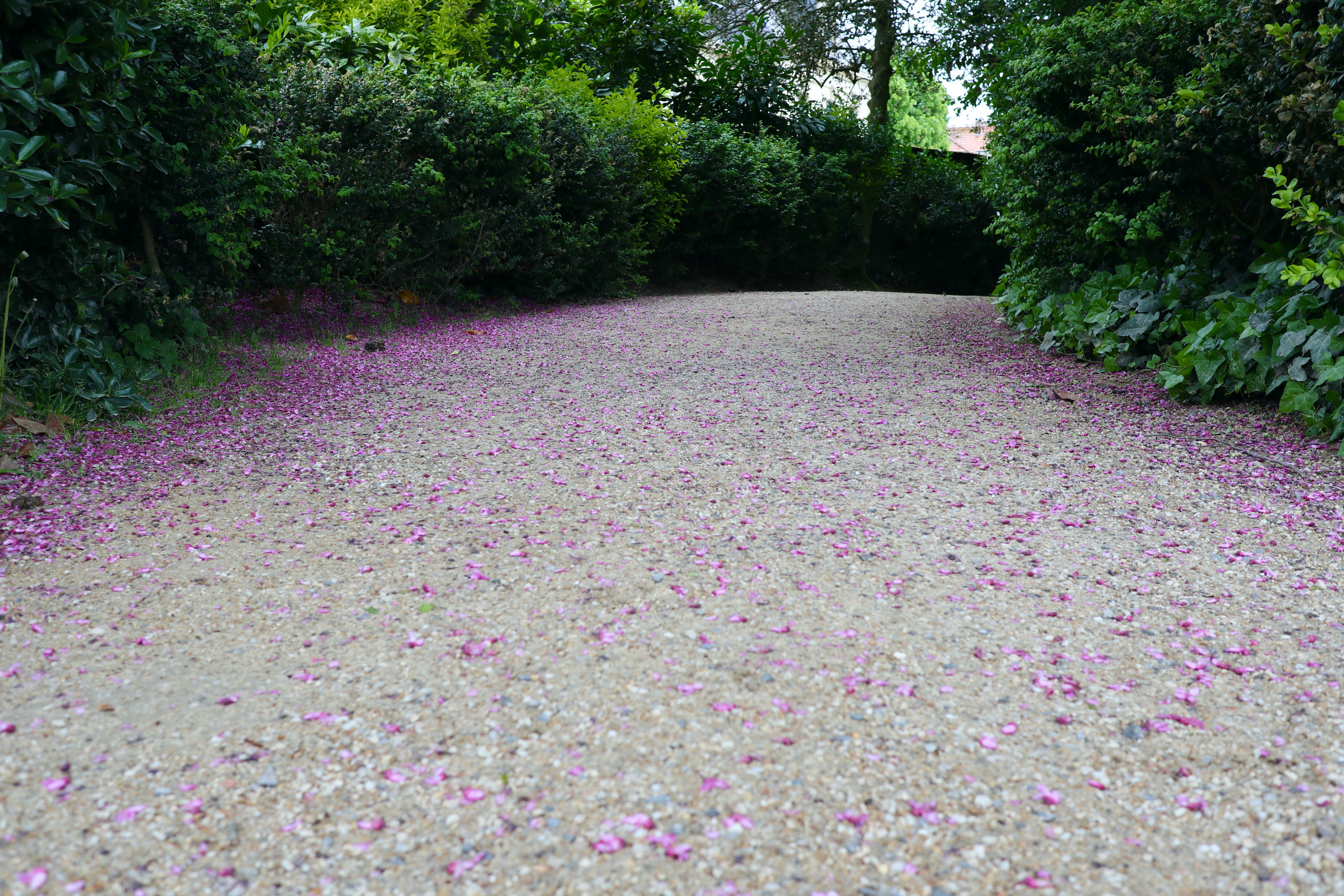 Beautiful petals on the walkway.