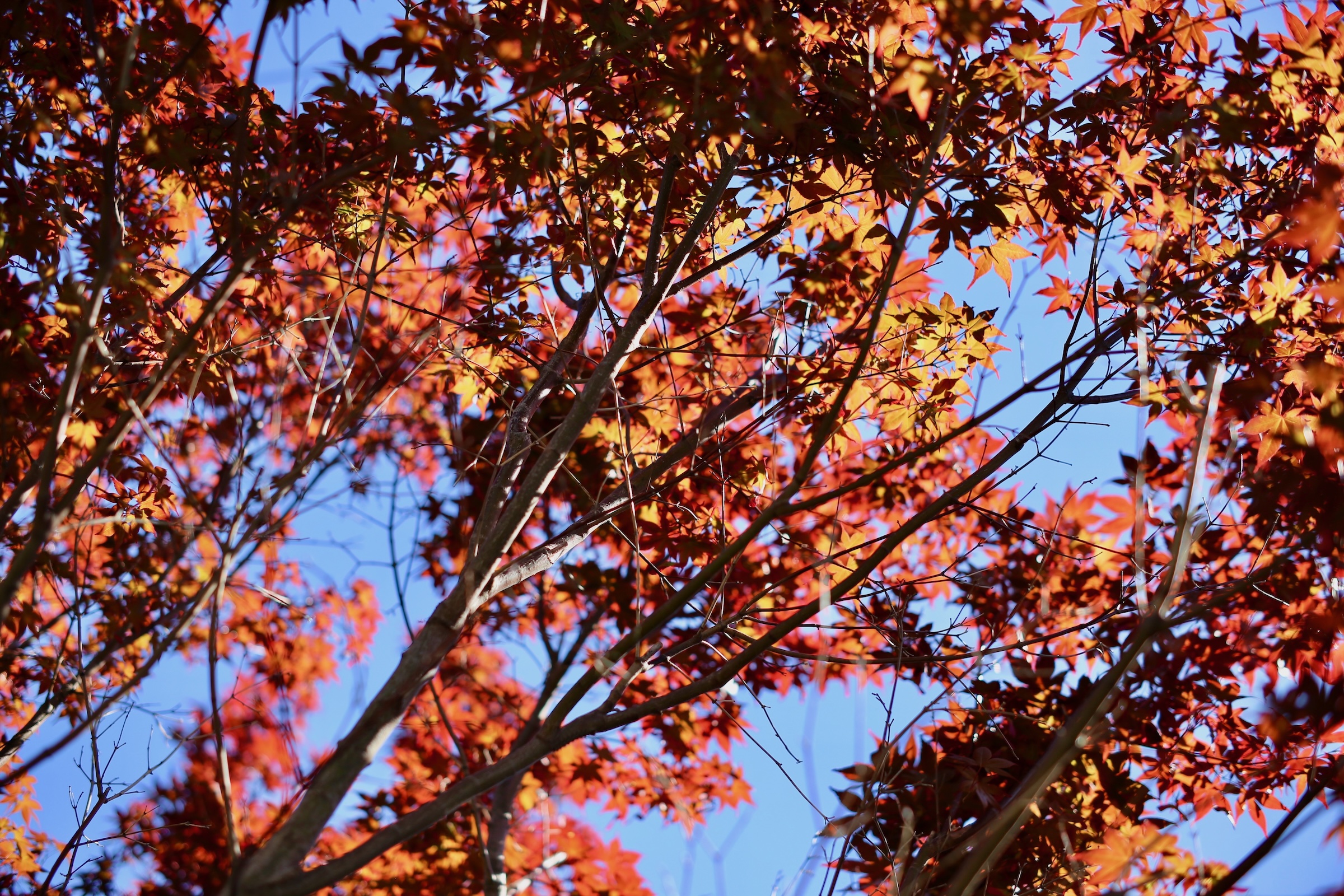 残念ながら、今年は非常に長く暑い夏で、美しい紅葉を見つけるのは簡単ではありません。 桜の木はまだ紅葉する前に葉が落ちてしまいました。 イロハモミジのほとんどは茶色に見えます。