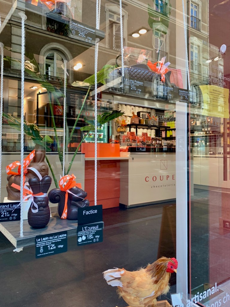 そのイースターのチョコレートが生活必需品なのかどうかは色々意見があろうが、チョコレートは立派な食料品であり、イースターを祝うことはフランス人にとって重要な日常生活の一部ということらしい。今年のイースターは3/30だったが、イースターは移動する祝日だがら、3月末から4月末辺りをうろうろする。調べたら2020年は4/12だったようである。街中にはイースター飾りが溢れ、人通りのほとんどない路地を「生活必需品」を手にいれるために歩くのは、案外小さな楽しみとなった。