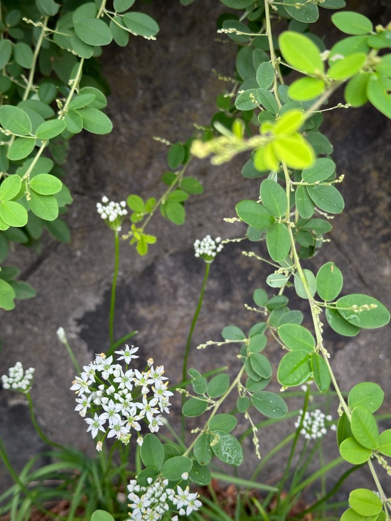 白い花はどうやらニラだと分かっている。ただ、植えられたニラではないので、どう言った経緯でそこにあるのかは分からない。坂がちの横浜の市道の階段にこぼれて育つニラは、抜いても抜いても毎年咲き続ける。ネギの仲間だから葱坊主のような丸い花だが、案外観賞用としても美しい。若芽をとって食べても良いのかもしれないが、何しろ路傍の雑草。そう考えただけで試す気にはなれない。飼われている牛を見て食べたいと思わないのと同じなのか、違うのか。なんだか色々疑問の湧く秋ではある。