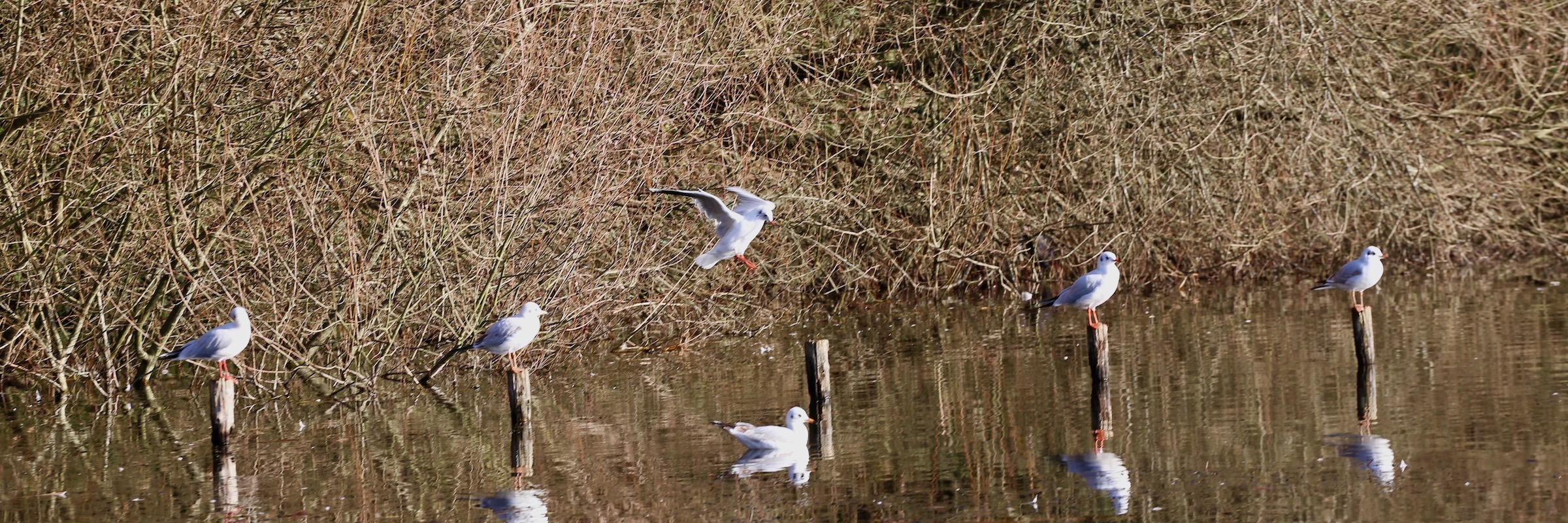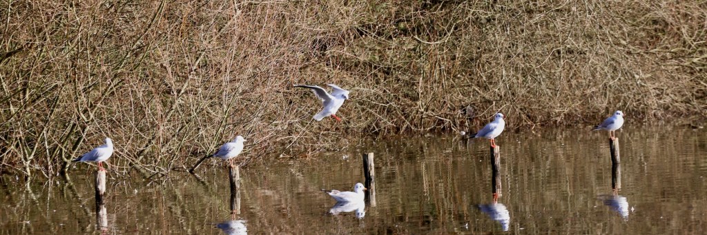 It was exceptionally fine. The sky was blue like a summer day, a plenty of sunshine and the wind was warm. I found some seagulls were relaxing in line. Of course, I was like a buddy of them in the sunshine.