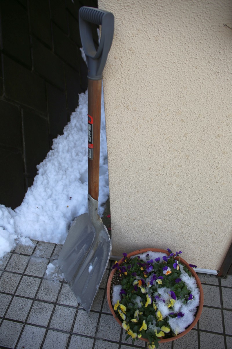 ある時期に新潟市に過ごした身からすれば、10cmの積雪で全国ニュースになるなら新潟の雪にもっと対策したらどうかという気にもなるが、要は慣れなのだ。地吹雪のようになれば車のライトをつけて速度を落とすとかそんな類のことである。対処ができれば雪の楽しみ方もある。ビオラの雪もこの程度であれば美しいだけだが、これ以上になるなら重くなる前に吹き飛ばしておくほうがよい。